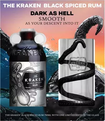 Kraken Rum Black Spiced Rum 94 Proof with Tiki Glass